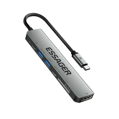Adaptateur HUB USB Type-C 6 EN 1 USB Type-C to HDMI / 2 USB 3.0 / SD / TF / USB-C Points forts: • HUB USB C 6 EN 1 : USB-C to HDMI / 2 USB 3.0 / SD / TF / USB-C • Matériau de haute q