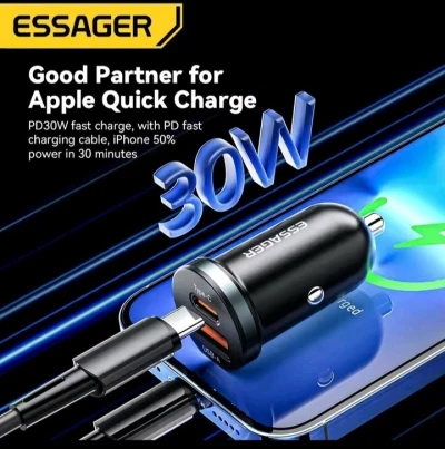 Chargeur voiture original La marque essager 33w+ cable type c 2 port USB A et type C