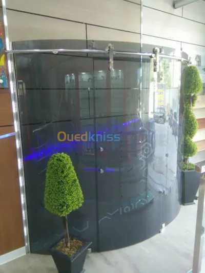 _fabrication et pose porte automatiques en verre trempé _fabrication et pose cabine de douche en verre avec ou sans sablage _fabrication *Façades,séparation,vitrines en verre trempé _Ram