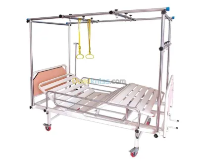 LIT DE TRACTION EN ABS À TROIS (03) POSITIONS Fabriqué en tube d’acier rectangulaire et tôle métallique, composé d’un dossier et relève jambes articulés par manivelles multi-po