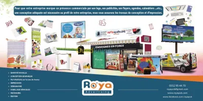 Notre entreprise est specialisée dans le secteur de la communication et la publicité. Dans ce cadre d'activité, elle s'occupe de la conception et la realisation. Nos services ont pa
