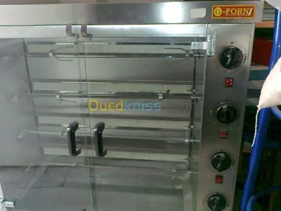 je met en vente quelque matériels de pizzeria plus presse a café 1-rôtisserie 04 bras de marque FORNI 2-machine a jus x04 3-four de pizza 2 étages 4- presse a café 04 bras