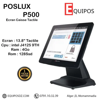 Marque POSLUX Ecran caisse tactile pour point de vente, Superette, Grande surface, Vetements ▪️Ecran : 13.8" Tactile ▪️Cpu : intel J4125 9TH ▪️Ram : 4Go ▪️Rom : 128Ssd Co