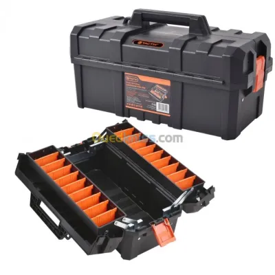 Caisses en plastique qui contient de plateaux en PP noir à l'intérieur La séparation amovibles pour personnaliser les compartiments. Un grand récipient au fond.