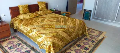 Vends un couvre lit perlé 100% fait main Dimensions 230cm x 270cm Avec 4 Taies d'oreillers neufs jamais utilisés etat 10/10