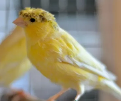 Canari satine jaune presque 6 mais raw ygazwii grand taille très bon santé avec sa cage