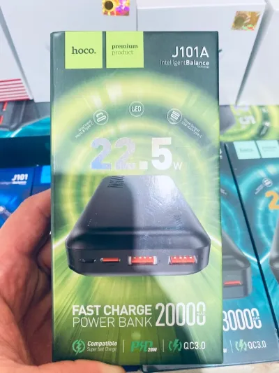 Power Bank Hoco J101A Astute 20000mAh avec USB 1/USB 2 22.5W USB-C 20W 5V/3A et affichage LED de la batterie. Une banque d'alimentation fiable qui peut être utilisée pour répondre à tout