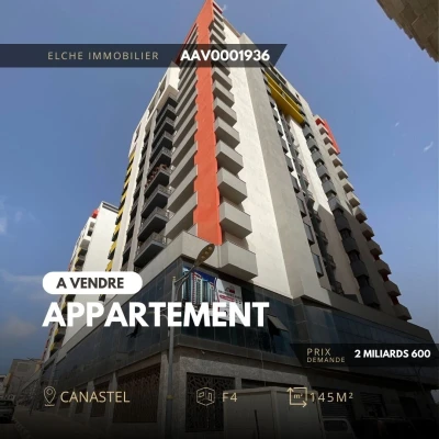 Réf : AAV0001936 Elche immobilier vous présente a la vente un appartement moderne de Type F4 ,a canastel ,ville d’Oran , il se compose de : - Acte - Superficie : 145 m² - 04 pièces +