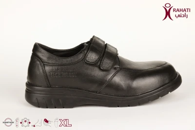 Chaussure en Cuir Noir, Semelle Cuvette, 4 Œillets. Chaussures diabétiques sont des chaussures médicales, thérapeutiques pour les diabétiques, conduisent à un traitement qui répond à