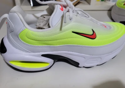 À Vendre : Nike Air Max Modèle : Nike Air Max (édition spéciale - blanc avec dégradé vert fluo et logo Swoosh rouge) NEW Pointure: 39 État: Neuf, jamais porté - encore avec l'�