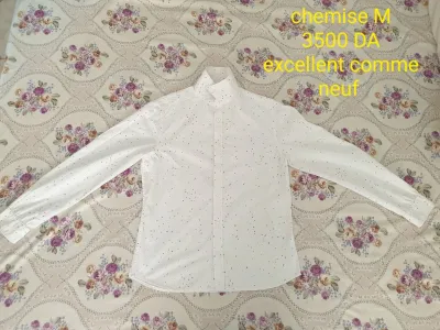 Une très belle chemise blanche original kaba ( avec motifs étoiles 🌟) Taille : M Marque : sport b paris État : excellent peut porté comme neuf 10/10 Prix : 3500 DA