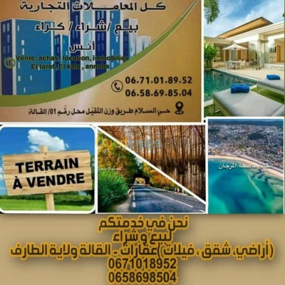 مكتب اعمال للخدمات العقارية بيع ، شراء،كراء (اراضي،شقق،فيلات)-عقارات القالة ولاية الطارف .
