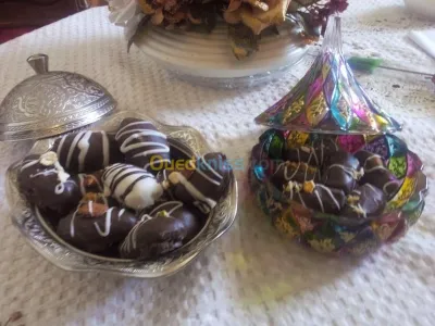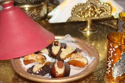 Salam, pour vos occasions sbou3 thara 3ors khotba fiancailles aid je vous propose mes services je prepares des dattes fourees aux amande glacage chocolat decoration hbal aussi je prepare des