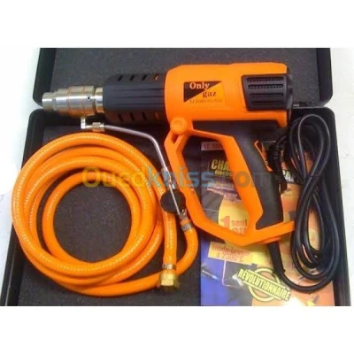 Chalumeau décapeur électro-gaz ONLYGAZ : - Température de flamme : 2300° C - Température de préchauffage : jusqu’à 650 °C - Puissance électrique : 2000 W - Type de gaz : Butane ou