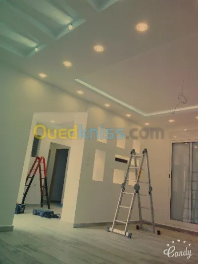 Tout travaux intérieur et extérieur Mur plafond sol Enduit peinture et décoration + peinture au pistolet Placo plâtre (ba13) mur et plafond avec décoration Pose fenêtre, pose