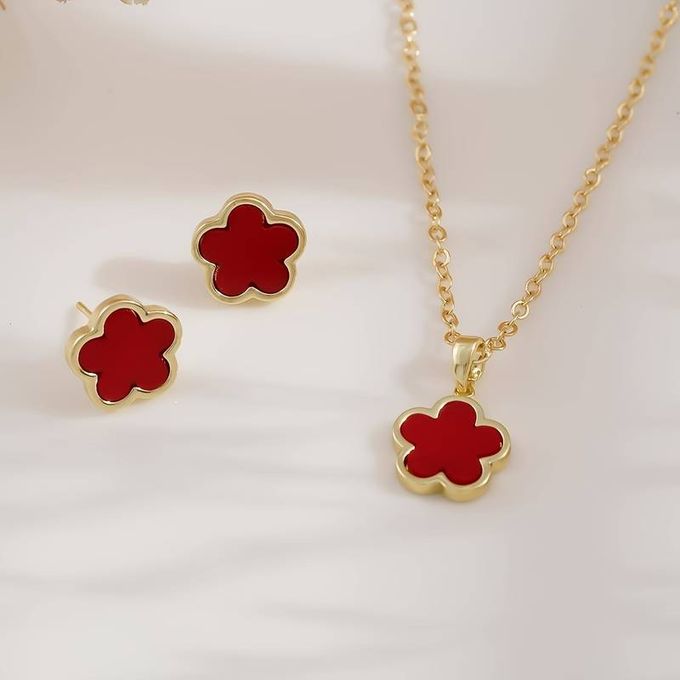 Collier inoxydable doré avec pendentif cerise en deux cœurs (rouge & rose).