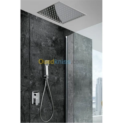 Ensemble de douche encastrable ( colonne encastré)pomme haute 40x40 cm fixée au plafond en acier inoxydable, forme carrée , extra-plate en chrome et anti-calcaire. Produit europeen de
