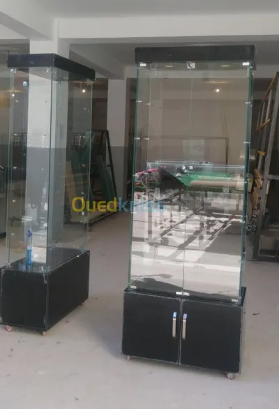 Armoire et Comptoirs d'exposition en verre, et combinés à d'autres matières Mélamine et High gloss, standard et sur mesure N'hésitez pas à nous contacter sur ce num svp