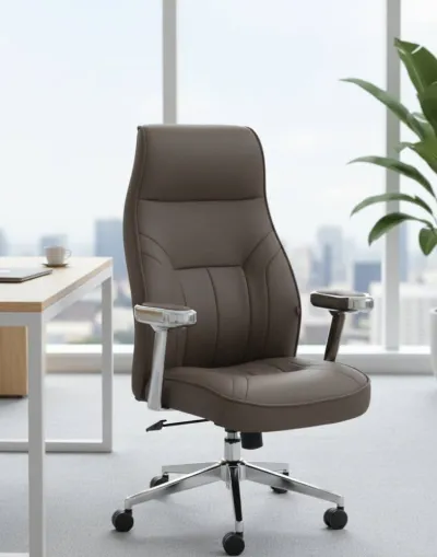 Chaise DG haute gamme en simili cuir orthopédique. -Couleur marron. -Faite en mousse injecté de haute qualité. -Supporte jusqu'à 180 kg. -Hauteur réglable et un système de blocage et d