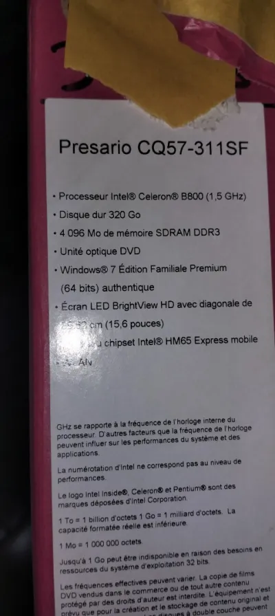 Pc portble compaq pour pièces