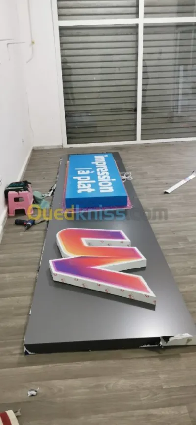 لافتات اشهارية وضوئية habillage fa�ade alucobande تقطيع فوركس و pmma و alucobande... الخ تغليف الواجهات طباعة رقمية و طبا