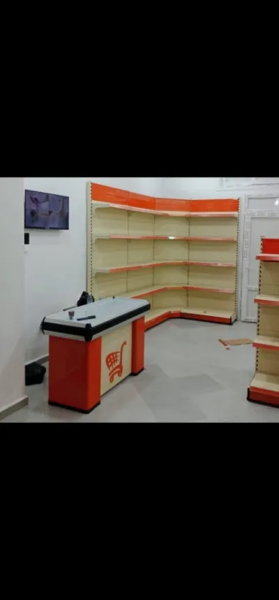 Mini supérettes avec 2 armoire 2m et un présentoir 2m et un présentoir 1m et des étrangers turc 14m murale et 4m au milieu et caisse avec logiciel et d'autre accessoires boîte à pain u