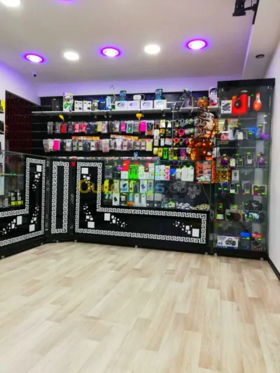 Etagere et comptoire +porte vetrine et faux plafond pvc 42m