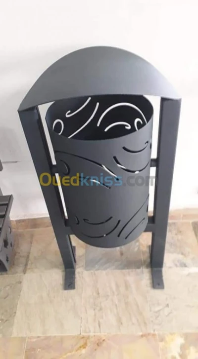 poubelle public modèle composé de pattes en acier et lattes en bois composite , résistant aux intempéries. CHARIOT SANS/POUBELLE STANDARD Traitement de surfaces: coloris sur demande