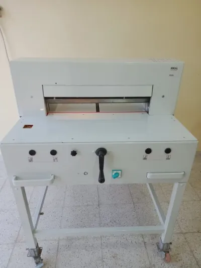 Je met en vente Un massicot électrique de marque idéal allemand presse électrique coupe électrique ouverture 65 cm énergie 380volts très bon état