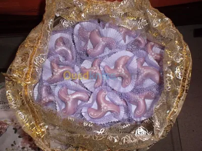 confection de differents types de gateaux au choix ,traditionnels et orientales à des prix trés abordables : Makrout aux dattes 30Da Makrout aux cacahuettes 50Da Makrout aux Amandes