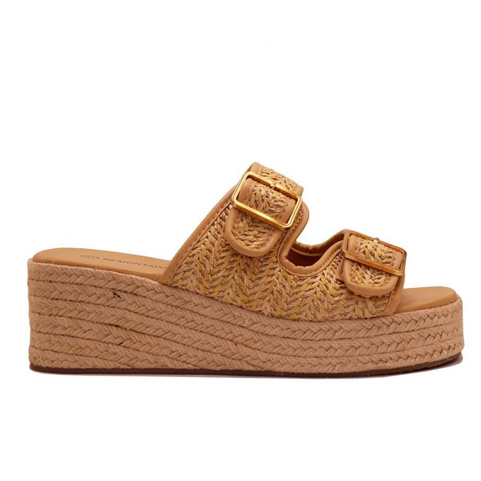 Sabot ouvert à semelle compensée, parfait pour rehausser vos tenues avec confort. Les brides larges tressées et les boucles dorées apportent une touche tendance. L’assise pied rembourr