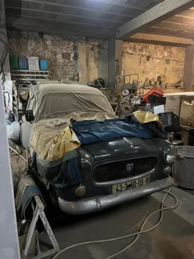 Peugeot 403 en bon état de fonctionnement, conduite par une seule personne et ayant très peu roulé. Véhicule 3 places, couleur gris foncé, équipé d’une bâche en bon état. Photos a