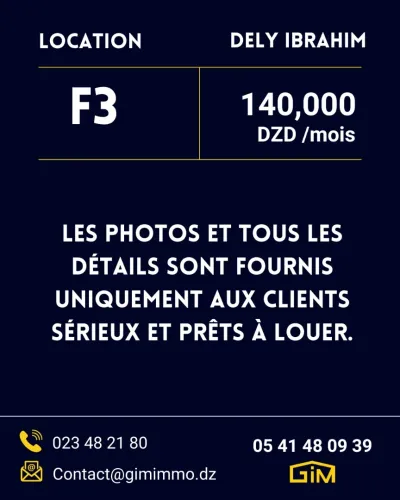 À louer – Très belle F3 à Saoula Je mets en location une magnifique F3 située à Saoula, dans un quartier calme, sécurisé et près de toutes les commodités (transports, commerces,