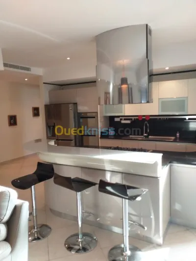 AG PITTORESQUE loue a HYDRA un Appartement de type F3, 130m² , meublé au 03 éme étage avec ascenseur et garage. *Cuisine entièrement équipé fermé. *G. salon avec balcon. *Suite paren