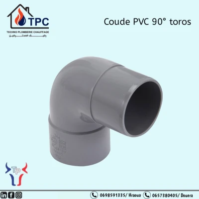 TPC vous assure la disponibilité des Accessoires en PVC Dimension : 32 - 40 - 50 - 63 - 80 - 100 - 110 - 125 - 160 - 200 - 250 - 316 Les accessoires disponibles : Tuyauterie Coude PVC 45°