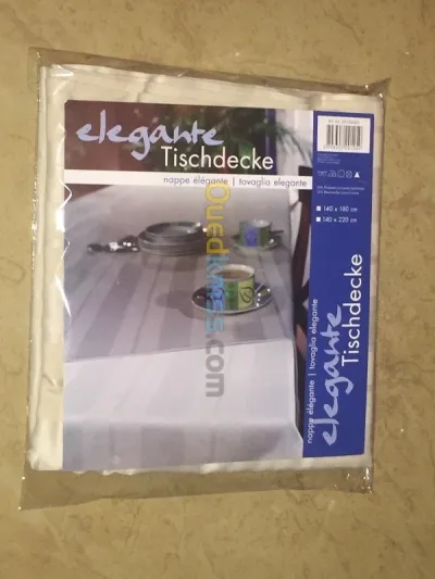 Je possède des nappes finie de bonne qualité avec deux dimension (1,4m*1,8m) et ( 1,4m*2,2M) disponible en trois couleur marron clair ,blanc cassé et beige.produit importé