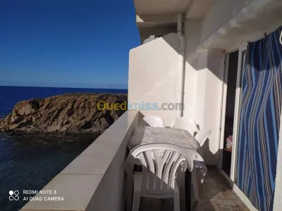 disponible pour les mois hors saison , un f3 pieds dans l'eau avec vue directe sur mer et cage d'escalier privée pour accéder à la plage , situé à benouda (1 km environ derrière plage
