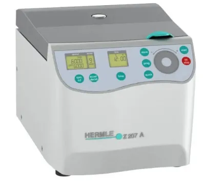 Description La centrifugeuse compacte Z 207 A polyvalente pour des applications générales de laboratoire avec un petit nombre d'échantillons, le panneau de commande innovant avec fonction
