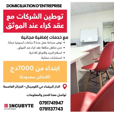 📢 هل تبحث عن عنوان قانوني لإطلاق شركتك في الجزائر العاصمة؟ مع INCUBYTE – دار البيضاء نوفر لك أفضل عروض التو�