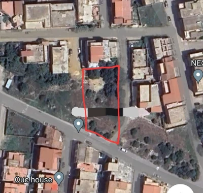 Grand terrain avec 3 façades dans le centre ville de Khraicia, à 1 minute du lycée Boukhlil. coopérative tranquille, idéal pour construction de villa, atelier, promotion. Possibilités
