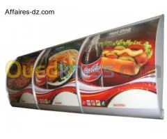 Bonjour , Je fait la creation du logo, flyers avec impression, catalogue avec Impression, bache avec impression, plaque forex avec impression UV, panneau publicitaire, packaging, étiquet