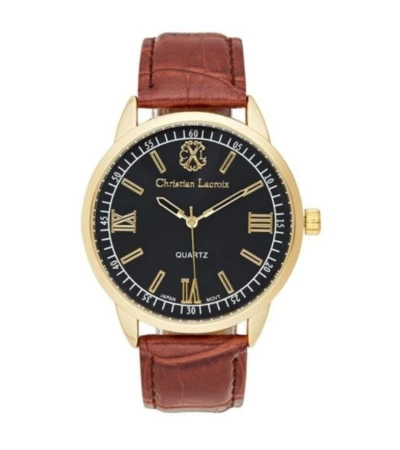 Montre à quartz. Bracelet effet croco. Fermeture par boucle ardillon. Etanchéité : 1 ATM/10 m. Diamètre boîtier : 42,5 mm Longueur bracelet : 190 mm Accompagnée de son écrin et de s