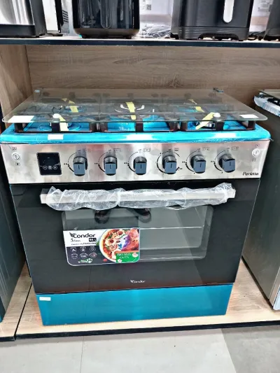 Cuisinière CONDOR PERFETTA 5feux Semi professionnel Inox Gaz Fonte Ventilé Catalysee Allumage intégré Tourne broche Minuterie digital Sécurité thermocouple Système tabona