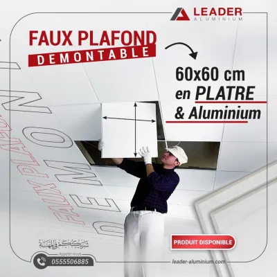 💥متوفر لدينا💥 💪ليدر أليمنيوم روفاتمون توفر لكم: ♦️Faux plafond démontable 60x60 en plâtre et en aluminium. 👉Structure: ✅️Entretoise