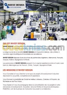 INVEST DESIGN CONSULTING est un Cabinet de Conseils et d 'Etudes en Investissement Industriels, En Marketing, Design, Architecture et Engineering. Dossier Calpiref investir en Algerie. Une