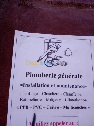 PLOMBIER CHAUFFAGISTE D ALGER LONGUE EXPERIENCE SERIEUX TOUS TRAVAUX PLOMBERIE CHAUFFAGE CHAUDFIERE SANITAIRE GAZ EAU ECT. . Confience assurree Cordiallement تحيتنا