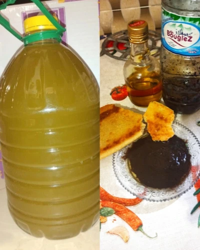 huile d olive pressé par presse traditionnelle (Tikfachéne) récolté et pressé décembre2024 +Fevrier2025 Pressé a Ahnif (w10) (huilerie Brahimi et Bechoute très bonne qualité d huile