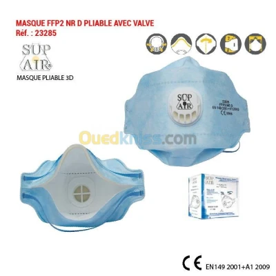 MASQUE FFP2 NR D PLIABLE AVEC VALVE Réf. : 23285 DESCRIPTION GÉNÉRALE / MATÉRIAUX Couche externe : SMS polypropylène Média filtrant : Polypropylène électrostatique fondu-souflé