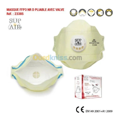 MASQUE FFP3 NR D PLIABLE AVEC VALVE Réf. : 23385 DESCRIPTION GÉNÉRALE / MATÉRIAUX Couche externe : SMS polypropylène Média filtrant : Polypropylène électrostatique fondu-souflé