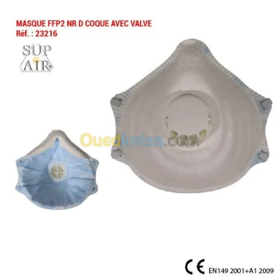 MASQUE FFP2 NR D COQUE AVEC VALVE Réf. : 23216 Description Générale / Matériaux FFP2 Masque coque avec valve Media filtrant en polypropylène électrostatique Couche e
